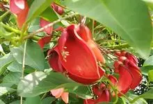 鸡冠刺桐是豆科、刺桐属落叶灌木或小乔木,茎和叶柄稍具皮刺。羽状复叶具3小叶;小叶长卵形或披针状长椭圆形,花与叶同出,总状花序顶生,每节有花1-3朵;花深红色,荚果长约15厘米,褐色,种子间缢缩;种子大,…全部>>