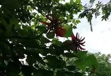 鹦哥花是豆科刺桐属植物,小乔木或乔木。树干和枝条具皮刺。羽状复叶,叶柄平滑,顶生小叶近肾形,侧生小叶斜宽心形,两面无毛。总状花序生于先端叶腋,花鲜红色,大,具花梗,苞片单生,卵形,花萼陀螺形,花冠红…全部>>