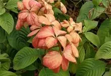 红纸扇是茜草科玉叶金花属植物。为多年生常绿灌木。植株高1.5-2米,树冠广圆形,分枝多,茎干绿色至深褐色。叶宽卵圆形,亮绿色,中脉及例脉密生红线毛,长8-15厘米。…全部>>