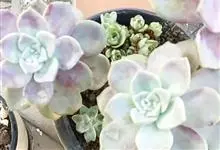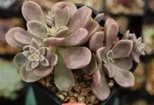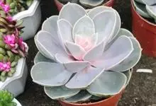 紫珍珠是景天科石莲花属的多年生肉质草本植物。植株中小型;叶片肉质,匙形,呈莲座状紧密排列;叶片粉紫色,叶缘呈粉白色,光照充足时颜色亮丽,不足时叶色会呈现深绿色或灰绿色,叶面光滑,被轻微白粉,…全部>>