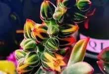 锦晃星是景天科、石莲花属多肉植物。多年生小灌木状多浆植物,灰绿色卵状倒披针形肥厚肉质叶轮状互生,全缘,椭圆尖头,长3-4厘米,宽2-2.5厘米,厚约1厘米,玲凉季节阳光下,叶端及上缘呈红色。…全部>>