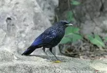 紫啸鸫是雀形目鹟科啸鸫属鸟类,又称黑雀儿,山鸣鸡、乌精。成鸟眼先及颏绒黑色;前额、头顶至背及肩羽和颈侧呈深紫蓝色,羽端具较密集的亮蓝色点斑;腰至尾上覆羽的深紫蓝色较暗而杂黑褐色,…全部>>