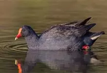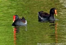 黑水鸡:是鹤形目、秧鸡科的鸟类,共有12个亚种。中型涉禽,体长24-35厘米。嘴长度适中,鼻孔狭长;头具额甲,后缘圆钝;嘴和额甲色彩鲜艳。翅圆形,第2枚初级飞羽最长,或第2枚和第3枚初级飞羽等长,…全部>>