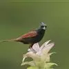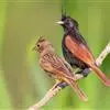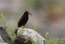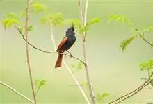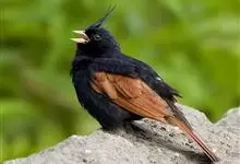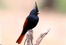凤头鹀:属小型鸣禽,体重21-31克,体长134-175毫米。以头顶的细长羽冠为特征,雄鸟全身几乎均为黑色具蓝色光泽,两翅和尾以及尾上覆羽栗红色。雌鸟具短的褐色羽冠,上体暗橄榄褐色,…全部>>