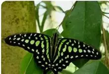 青带凤蝶Graphium sarpedon ,又名青凤蝶,是最普遍的中型凤蝶,飞行速度很快。青带凤蝶的翅膀中央有许多浅蓝色的斑点,很整齐地排列成一条直线。这些斑点由上而下逐渐变大,就像一条青色的带子。全部>>