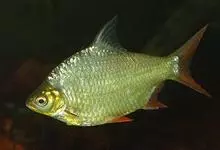 泰国鲫,Barbonymus schwanenfeldii ,鲤科高体鲃属的一种鱼类。喜欢在水的中层游动,行动敏捷、具群游性 体型似普通的鲫鱼,幼鱼没有色彩,而成鱼则银鳞闪闪,…全部>>