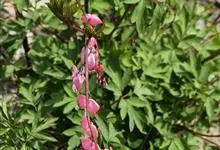 荷包牡丹 Fukuhara),是罂粟科荷包牡丹属的多年生草本植物,株高30-60厘米,具肉质根状茎;茎直立呈圆柱形;叶二回三出全裂,状似牡丹叶;总状花序顶生,基部为心形,花瓣紫红色至粉红色,稀白色,…全部>>