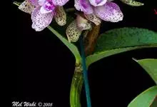 指甲兰是兰科指甲兰属植物。其茎粗壮;叶带状;总状花序疏生数朵花;萼片和花瓣淡白色,上部具紫红色;唇瓣侧裂片镰状长圆形;中裂片近宽卵形,前半部紫色,后半部白色带紫色斑点和条纹,先端凹缺,…全部>>