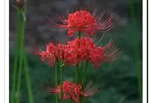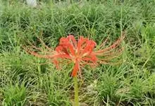 石蒜[学名:Lycoris radiata Herb.],是石蒜科石蒜属的多年生草本植物,别名彼岸花、红花石蒜、死人花、蟑螂花、龙爪花等。石蒜的叶狭带状,中间有粉绿色带,秋季出叶。伞形花序,花鲜红色。…全部>>