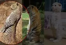 花豹:是哺乳纲、猫科、豹属的大型肉食性动物,体长100-150厘米,体重50-100千克。体形似虎,但明显较小;躯体均匀,四肢中长,趾行性。视、听、嗅觉均很发达。头小尾长,四肢短健,前足5趾,后足4趾,…全部>>