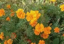 万寿菊是菊科万寿菊属一年生草本植物,别名孔雀菊、缎子花、臭菊花、西番菊、红黄草、小万寿菊、臭芙蓉、孔雀草。万寿菊茎近基部分枝。叶羽状分裂,长5-10厘米,宽4-8厘米,裂片长椭圆形或披针形,具锐齿,…全部>>