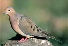 哀鸽,又名“泣鸽、哀鸠”,是鸠鸽科哀鸠属的鸟类动物。体形修长,全身羽毛为浅灰褐色,翅膀下部颜色较浅,尾羽尖,翅膀上有几块黑色的斑点,头和胸腹部为粉红色。雄性哀鸽在颈部两侧各有一小片具有金属光泽的羽毛。…全部>>