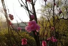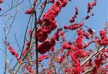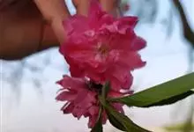 红叶碧桃是蔷薇科李属的一种落叶小乔木,是碧桃的一个变异品种。其小枝呈红褐色,单叶互生,叶片呈卵圆状披针型,在生长初期,叶子为鲜红色。花为重瓣状,呈桃红色。核果为球形,果皮周围有短的茸毛,并且内含蜜汁。…全部>>