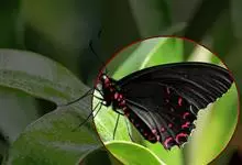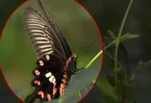 曙凤蝶是凤蝶科、曙凤蝶属蝴蝶。体背黑色,头、颈、胸侧及腹侧具红色鳞毛。雌、雄异型。雄蝶翅黑绒色,后翅的臀缘褶很大,反卷且具灰白色体毛的性标。雌蝶前翅大部及后翅色淡,…全部>>