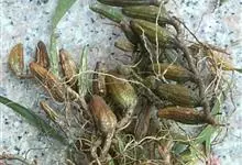 云南石仙桃:根状茎匍匐、分枝,粗4-6毫米,密被箨状鞘,通常相距1-3厘米生假鳞茎;假鳞茎近圆柱状,向顶端略收狭顶端生2叶。叶披针形,坚纸质。花葶生于幼嫩假鳞茎顶端,连同幼叶从靠近老假鳞茎基部的根状…全部>>