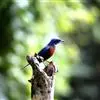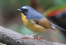 棕胸蓝姬鹟:属小型鸣禽,体长10-13厘米,体重6-10克,是一种体型很小的灰蓝及棕色鹟,雌雄羽色不同,雄鸟羽色艳丽,雌鸟羽色暗淡。雄鸟上体深蓝色,胸橙黄色,下腹灰白色。亚成鸟具褐色斑驳。…全部>>
