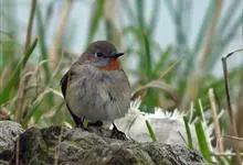 红喉姬鹟小型鸟类,体长11~13厘米。雄鸟上体灰黄褐色,眼先、眼周白色,尾上覆羽和中央尾羽黑褐色,外侧尾羽褐色,基部白色。颏、喉繁殖期间橙红色,胸淡灰色,其余下体白色,非繁殖期颏、喉变为白色。…全部>>