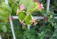使君子 Jongkind)是使君子科、使君子属攀援灌木,叶对生,椭圆形,两面均被灰白色柔毛。穗状花序,倒挂下垂。花期夏秋。果有五棱,熟时黑色,种子白色。分布于印度、缅甸、菲律宾和中国。喜温润,深根性,…全部>>