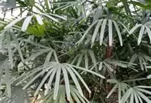 细叶棕竹,灌木,茎细如竹,多数聚生,有网状叶鞘。叶半圆形,掌状深裂,裂片狭长,阔线形,软垂,裂片7-20枚,叶柄无刺。全部>>