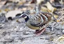 褐胸山鹧鸪:雄鸟体长22厘米,体重310克;雌鸟体长23厘米,体重220-275克。前额皮黄白色,头顶橄榄褐色。眼部的裸皮鲜红色,有一条宽阔的皮黄白色眉纹一直延伸到颈的侧部。上体亮橄榄褐色,具黑色横斑。…全部>>