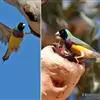 七彩文鸟是梅花雀科、鹦雀属鸟类。头部羽色有黑、红、黄之别。幼鸟体色初期为灰色,下部较淡,腹白;背部为橄榄绿,胸部呈葡萄色,成熟后面部会变成红色或黄色。雄性背部绿色,紫色胸前有圆形或椭圆形斑块,…全部>>