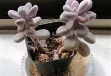 紫珍珠是景天科石莲花属的多年生肉质草本植物。植株中小型;叶片肉质,匙形,呈莲座状紧密排列;叶片粉紫色,叶缘呈粉白色,光照充足时颜色亮丽,不足时叶色会呈现深绿色或灰绿色,叶面光滑,被轻微白粉,…全部>>
