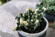 鹿角海棠是番杏科鹿角海棠属多浆肉质灌木。老枝呈灰褐色,木质化,嫩枝为淡绿色,分支处有节间;叶交互对生,呈半月形,三棱状,为粉绿色至灰绿色,叶端狭窄,先端尖锐;叶尖微粉红色,叶背有龙骨状突起,…全部>>