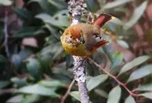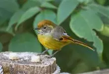 火尾希鹛,是画眉科、希鹛属的鸟类。 火尾希鹛为小型鸟类,体长12-15cm。头黑色,具长而宽阔的白色眉纹,在黑色的头部极为醒目。上体栗色或灰橄榄褐色,下体淡黄白色,尾黑色,外翈羽缘赤红色具白…全部>>