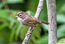 棕头雀鹛为鸦雀科,褐鹛属小型鸟类,体长10-13厘米。头顶栗褐色具黑色侧冠纹。上体茶黄色,飞羽外侧表面灰白色,内侧表面红棕色,内外二色之间夹有黑色。颏、喉白色具不明显的暗色纵纹,胸沾葡萄灰色,…全部>>