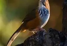 斑胸钩嘴鹛是雀形目、画眉科、钩嘴鹛属的鸟类。体型略大的钩嘴鹛。无浅色眉纹,脸颊棕色。甚似锈脸钩嘴鹛但胸部具浓密的黑色点斑或纵纹。栖息于低山地区及平原的林地灌丛间,在林间作短距离飞翔。…全部>>