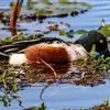 琵嘴鸭又名铲土鸭、琵琶嘴鸭,是雁形目鸭科鸭属鸟类。雄鸟头颈部墨绿色带金属光泽,背、腰暗褐色;尾上覆羽墨绿色,中央尾羽暗褐色带白色端斑,外侧尾羽白色;翼褐色,具金属绿色翼镜,翼镜前缘有宽白带,…全部>>
