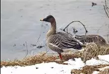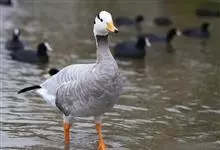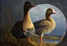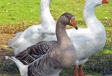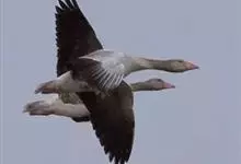 灰雁:体长70-90厘米,翼展147-182厘米,体重2.5-4千克,寿命17年。体大而肥胖。嘴、脚肉色,上体灰褐色,下体污白色,飞行时双翼拍打用力,振翅频率高。脖子较长。腿位于身体的中心支点,…全部>>