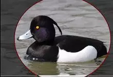 斑背潜鸭体长42-47厘米,翼展68-75厘米,体重750-1350克,是中等的体矮型鸭。雄鸟体比凤头潜鸭长,背灰,无羽冠。雌鸟与雌凤头潜鸭区别在于嘴基有一宽白色环。…全部>>