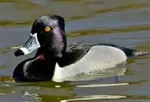 斑背潜鸭体长42-47厘米,翼展68-75厘米,体重750-1350克,是中等的体矮型鸭。雄鸟体比凤头潜鸭长,背灰,无羽冠。雌鸟与雌凤头潜鸭区别在于嘴基有一宽白色环。…全部>>