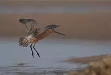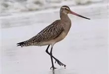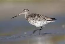 斑尾塍鹬,是鸻形目鹬科塍鹬属鸟类。其体形较大,体长约40厘米;喙较长,基部肉红色、尖端黑色而略向上翘;贯眼纹细而深,眉纹白色明显;雌鸟体型比雄鸟大,喙部也明显更长。非繁殖期雌雄鸟羽色相似,…全部>>