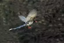 红嘴蓝鹊,别名山鹊、长尾鹊,是鸦科蓝鹊属的一种观赏性较强的大型鸣禽。该物种为体长54~65cm,头、颈、喉和胸黑色,头顶至后颈有一块白色至淡蓝白色或紫灰色块斑,其余上体紫蓝灰色或淡蓝灰褐色。尾长呈凸状,…全部>>