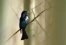 发冠卷尾是中型鸟类,体长28-35厘米。通体绒黑色缀蓝绿色金属光泽,额部具发丝状羽冠,外侧尾羽末端向上卷曲。栖息于海拔1500米以下的低山丘陵和山脚沟谷地带,多在常绿阔叶林、次生林或人工松林中活动。…全部>>