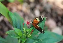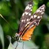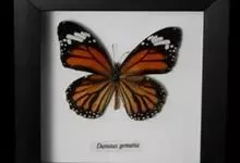 黑脉金斑蝶:翅阔8.6-12.4厘米。雄蝶较雌蝶为大。成年蝶颜色鲜艳,翅膀上有显眼的橙色及黑色斑纹,周围是宽阔的黑色边框,布有许多白色斑点。这种引人注目的着色是对捕食者的视觉警告,表示这个物种有毒;…全部>>