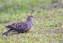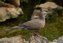珠颈斑鸠,别名花斑鸠、珍珠鸠、花脖斑鸠、鸪鹪,是鸠鸽科副斑鸠属鸟类。体型中等,体长27~34cm,体重120~205g,雌鸟和雄鸟羽色相似,但雌鸟不如雄鸟羽色亮泽。珠颈斑鸠前额至头顶羽色稍淡,…全部>>