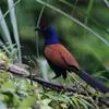 褐翅鸦鹃,是鹃形目鸦鹃科鸦鹃属的鸟类。褐翅鸦鹃的身体为黑色;头颈和胸带蓝紫色金属光泽并具黑亮的羽干纹,下胸至腹部泛金属绿光泽;两翼和肩部为棕栗色,外侧飞羽具暗色羽端,尾羽闪铜绿色光泽;虹膜赤红色,…全部>>