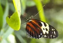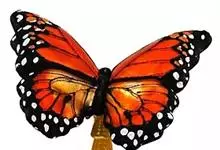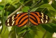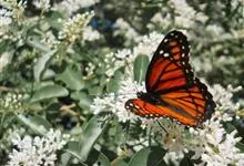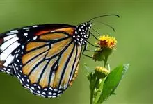 黑脉金斑蝶:翅阔8.6-12.4厘米。雄蝶较雌蝶为大。成年蝶颜色鲜艳,翅膀上有显眼的橙色及黑色斑纹,周围是宽阔的黑色边框,布有许多白色斑点。这种引人注目的着色是对捕食者的视觉警告,表示这个物种有毒;…全部>>