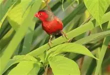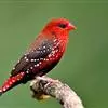 红梅花雀小型鸟类,体长9-10厘米。雄鸟通体朱红色,背、肩、胸等满布白色小斑点,两翅和尾黑褐色均具白色端斑,嘴红色,脚蜡黄色。雌鸟上体淡褐色或赭褐色,翅上中覆羽、大覆羽和内侧飞羽末端具白色斑点,…全部>>