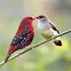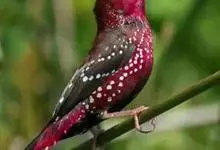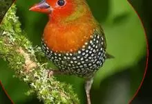 红梅花雀小型鸟类,体长9-10厘米。雄鸟通体朱红色,背、肩、胸等满布白色小斑点,两翅和尾黑褐色均具白色端斑,嘴红色,脚蜡黄色。雌鸟上体淡褐色或赭褐色,翅上中覆羽、大覆羽和内侧飞羽末端具白色斑点,…全部>>