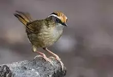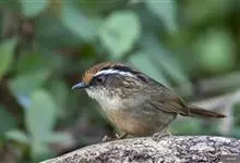 褐胁雀鹛,是莺科、雀鹛属的鸟类。褐胁雀鹛是小型鸟类,体长13-15厘米。头顶棕褐色,黑色侧冠纹和宽阔的白色眉纹,眼先黑色。上体包括两翅和尾橄榄褐色。颏、喉、胸、腹白色,腹和胸沾皮黄色,两胁橄榄褐色,…全部>>