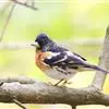 燕雀属小型鸟类,体长14-17厘米。嘴粗壮而尖,呈圆锥状。雄鸟从头至背辉黑色,背具黄褐色羽缘。腰白色,颏、喉、胸橙黄色,腹至尾下覆羽白色,两胁淡棕色而具黑色斑点。两翅和尾黑色,翅上具白斑。…全部>>