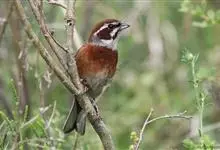栗斑腹鹀:属小型鸣禽。体重19-25克,体长145-167毫米。头顶至背栗红色,眼先和颧纹黑褐色,黑色颧纹上还有一白纹,耳羽褐色或灰褐色,眉纹白色或灰白色。背、肩具黑色纵纹,腰至尾上覆羽砖红色无纵纹,…全部>>