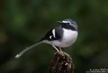 白额燕尾是雀形目鸫科燕尾属鸟类,又叫水鸦雀、白冠燕尾、黑背燕尾。前额至头顶具白斑,头余部、颈、背、喉及胸黑色,腰、腹部及尾下覆羽白色,两翼黑色且具白色翼斑;尾上覆羽黑色并具白色端斑,中央尾羽最短,…全部>>