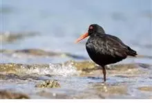 蛎鹬是鸻形目蛎鹬科蛎鹬属。蛎鹬的成鸟夏羽头、颈、胸和上体大部分为乌亮的黑色,腰到尾上覆羽白色,尾羽基部白色,端部黑色;翼上黑色,具有白横斑;下体胸部以下白色,翼下白色带黑缘;虹膜红色,啄和眼圈橘色,…全部>>