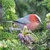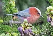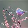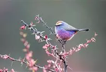 凤头雀莺:小型鸟类。体长9-10厘米,雄鸟呈毛茸茸的紫色和绛紫色,顶冠淡紫灰色,额及凤头白色,尾全蓝。雌鸟喉及上胸白,至臀部渐变成淡紫色,耳羽灰,…全部>>