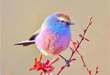 花彩雀莺:体长9-12厘米,是一种毛茸茸偏紫色的雀莺。顶冠棕色,眉纹白。尾长,羽毛松软。前额有一宽阔的眉纹淡黄色,头顶栗色或棕红色,有的具紫蓝色光泽。背灰色,腰和尾上覆羽辉紫蓝色,飞羽灰褐色。…全部>>